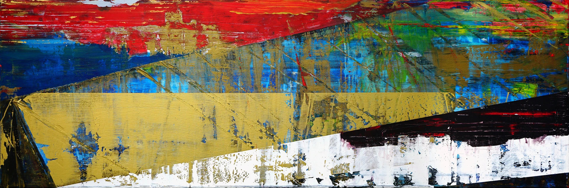 Krajina podivně členěná, akryl na plátně, 60 x 180 cm, 2025